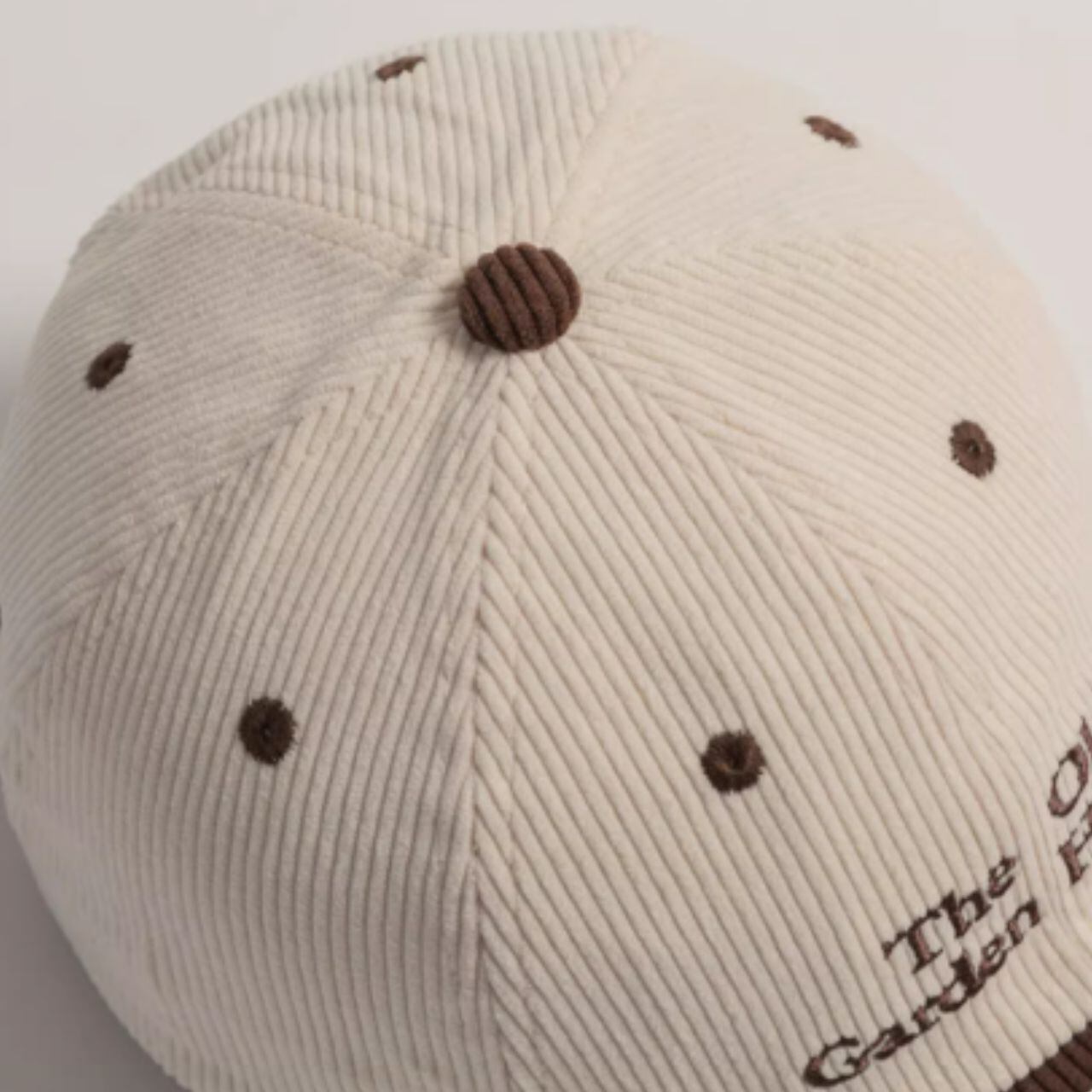 温かみのあるコーデュロイ素材のロゴキャップ。
