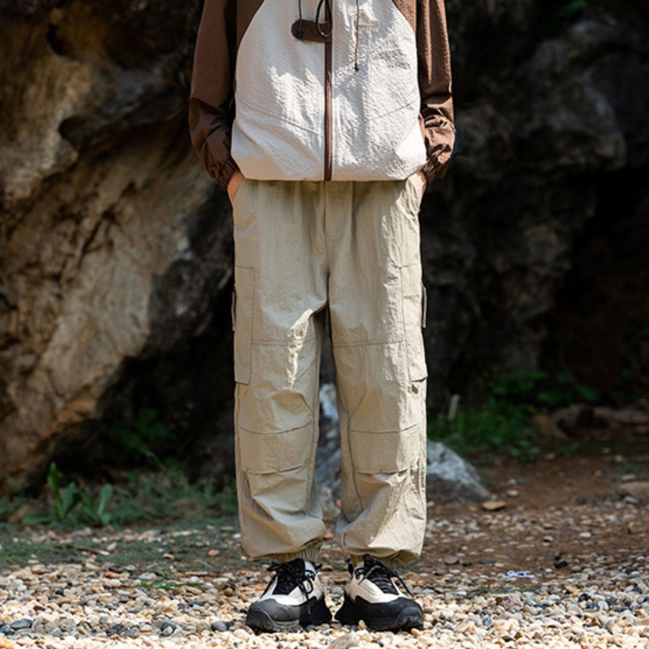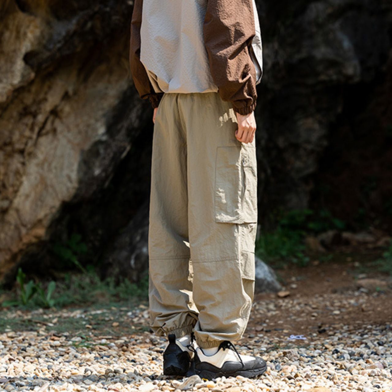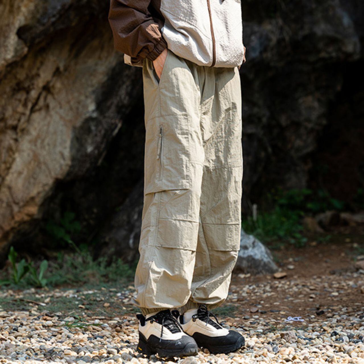 テーパードシルエットが魅力的なカーゴパンツ。