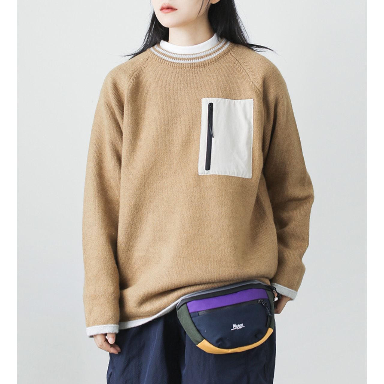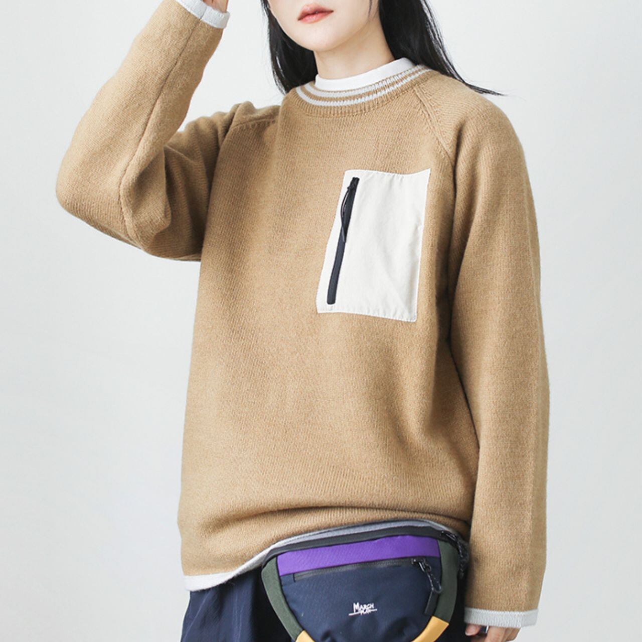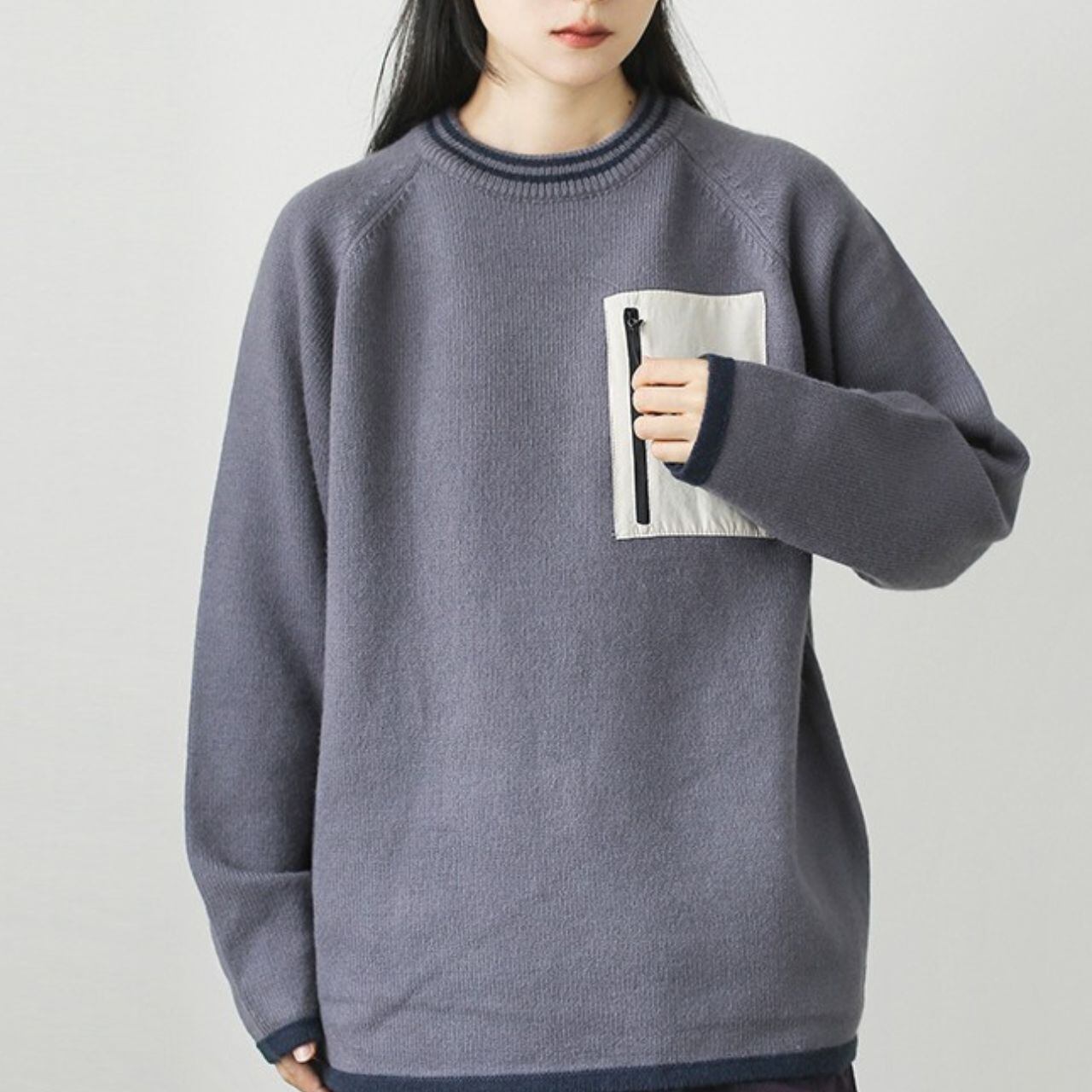 胸元のパッチポケットがアクセントの長袖クルーネックニット。