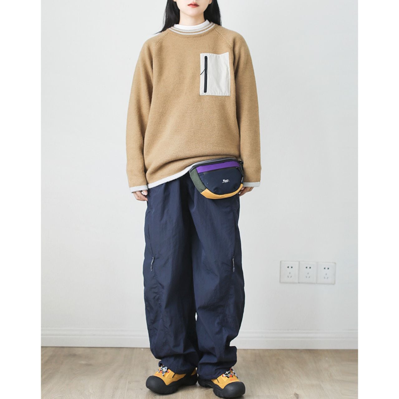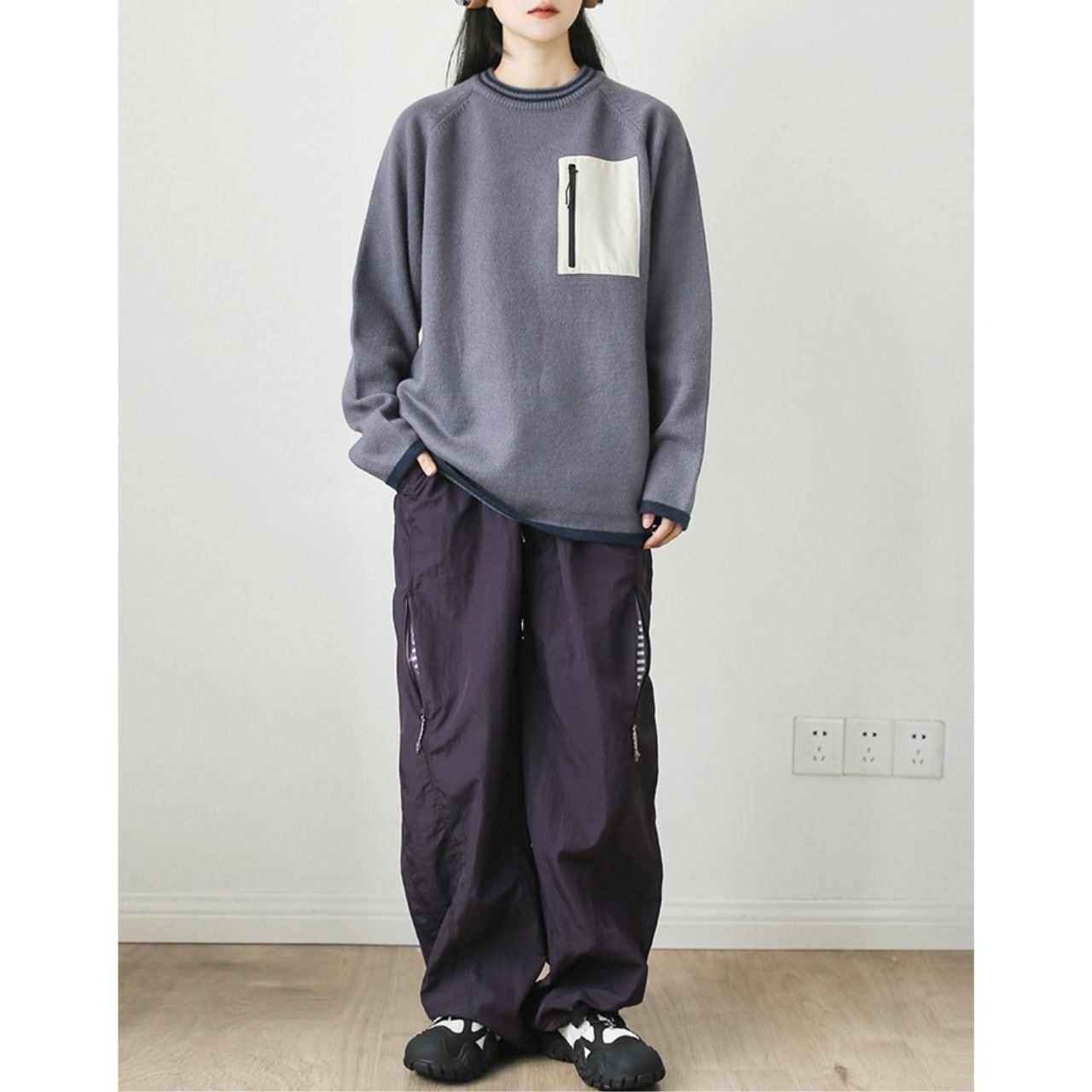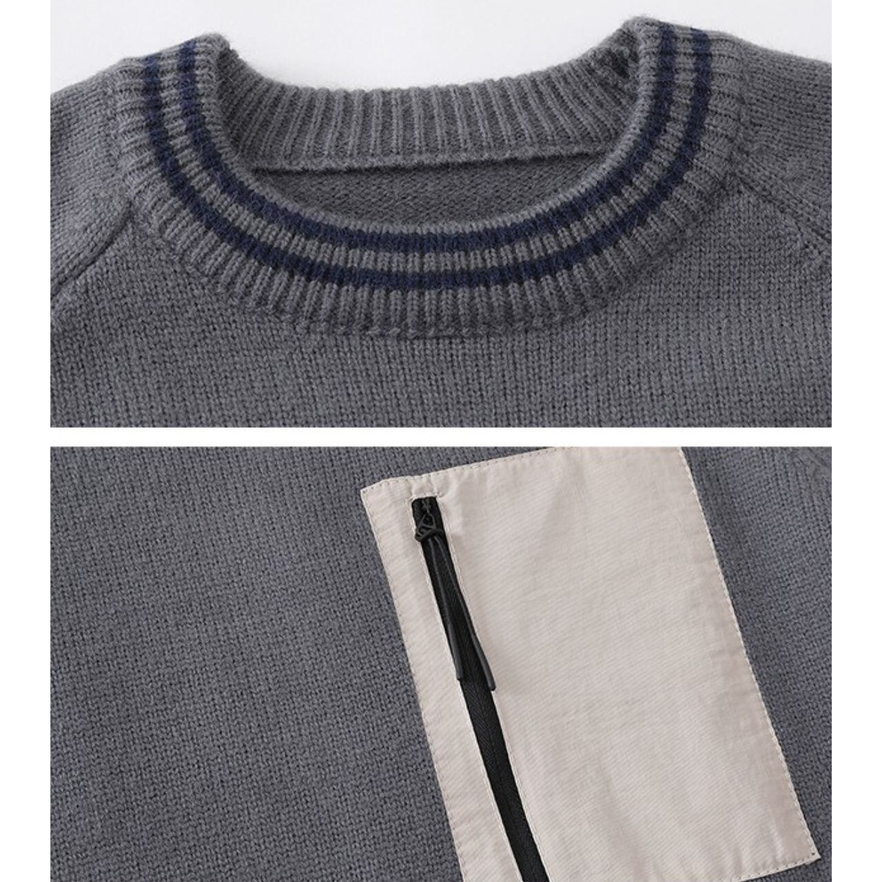 胸元のパッチポケットがアクセントの長袖クルーネックニット。