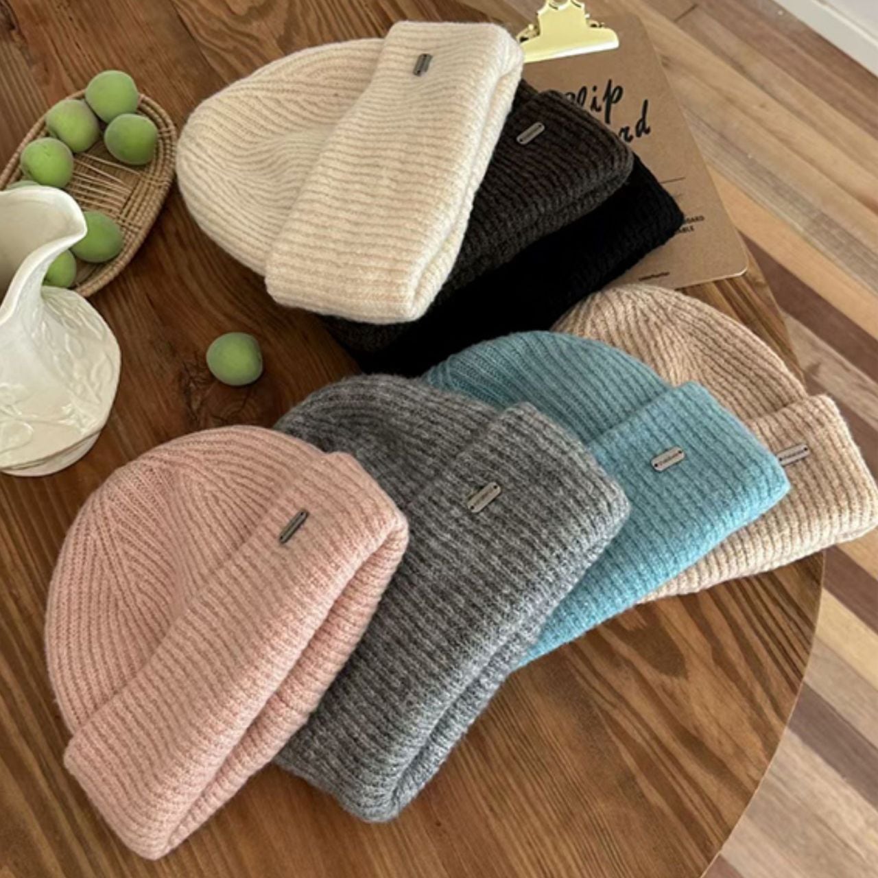 シンプルなリブ編みのニットキャップ。