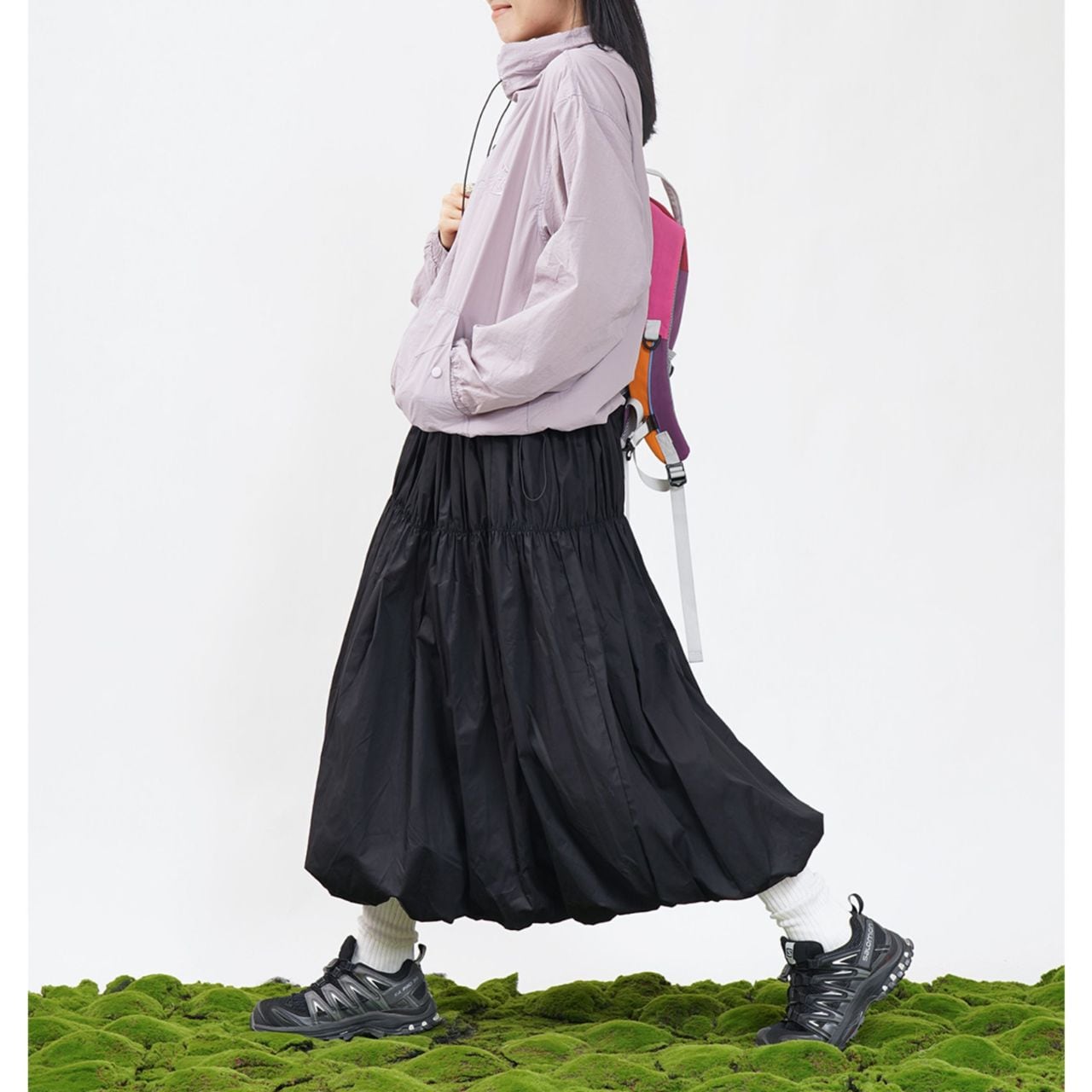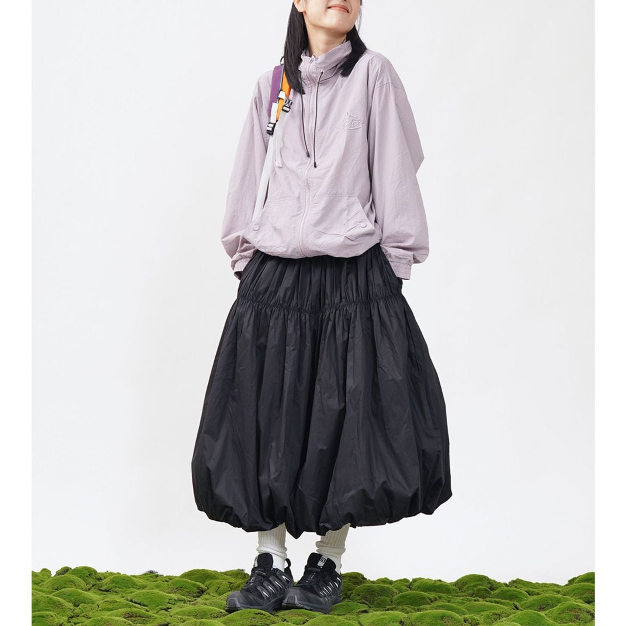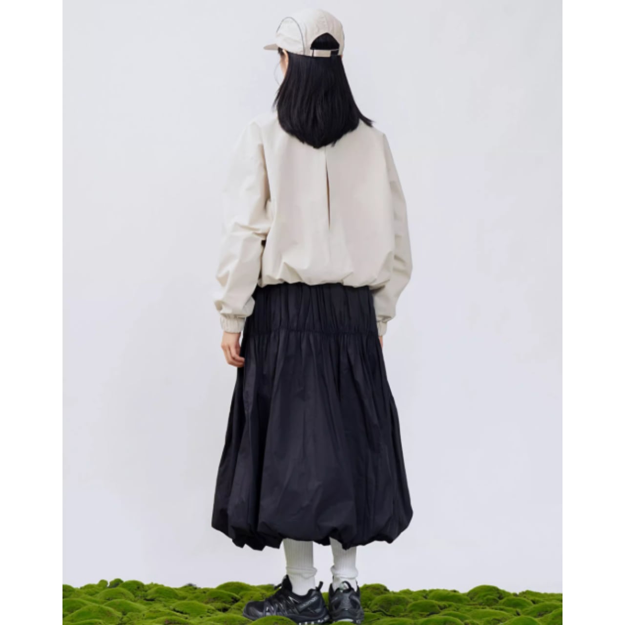 ギャザーを寄せたバルーンシルエットが特徴のスカート。