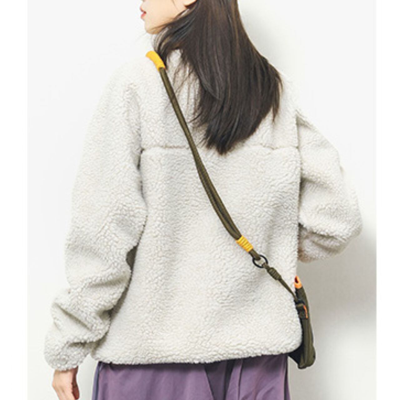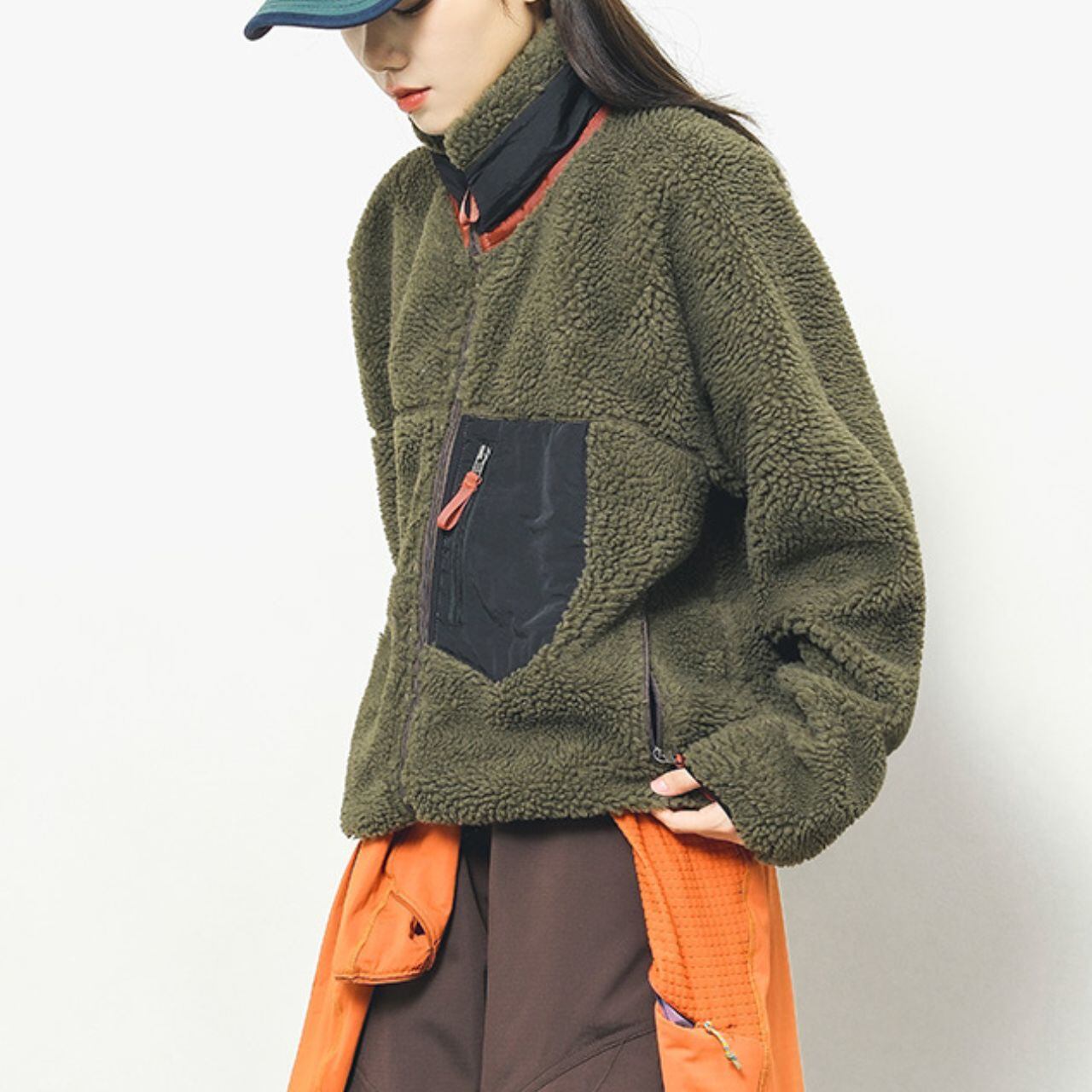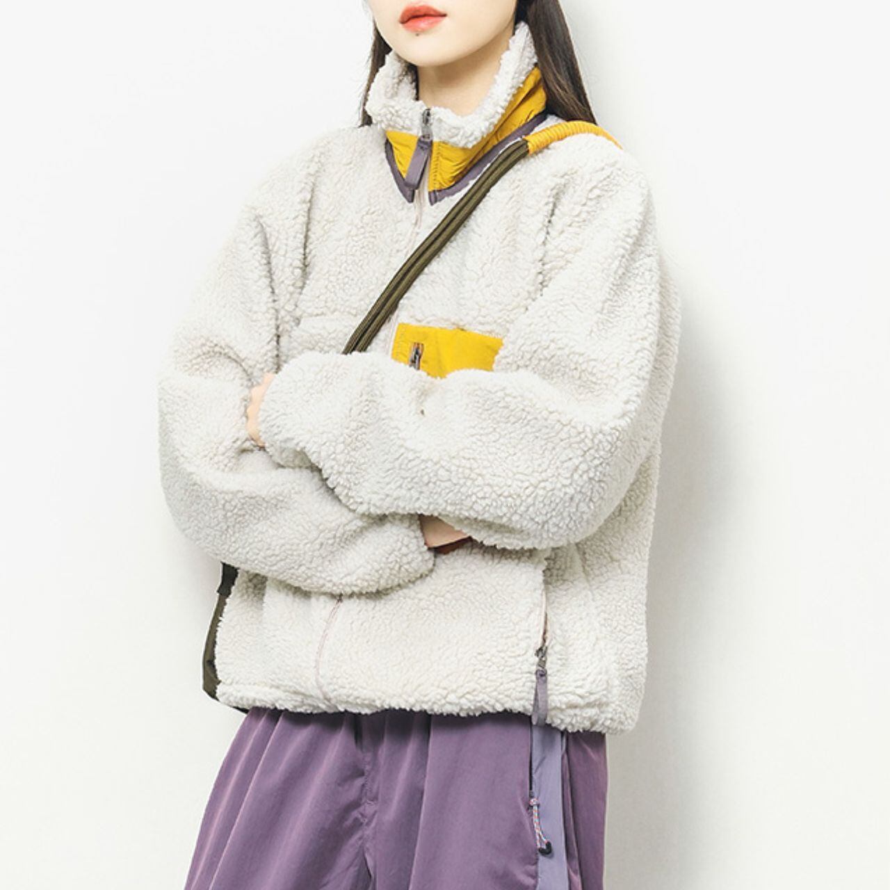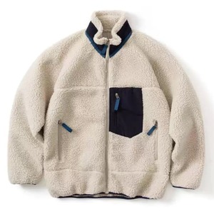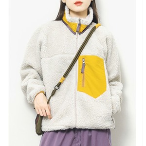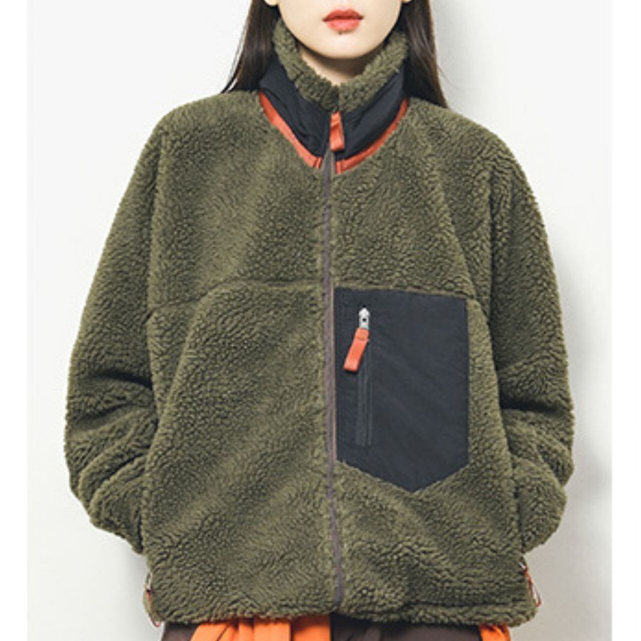 ネックラインとポケットの配色がアクセントのボアジャケット。
