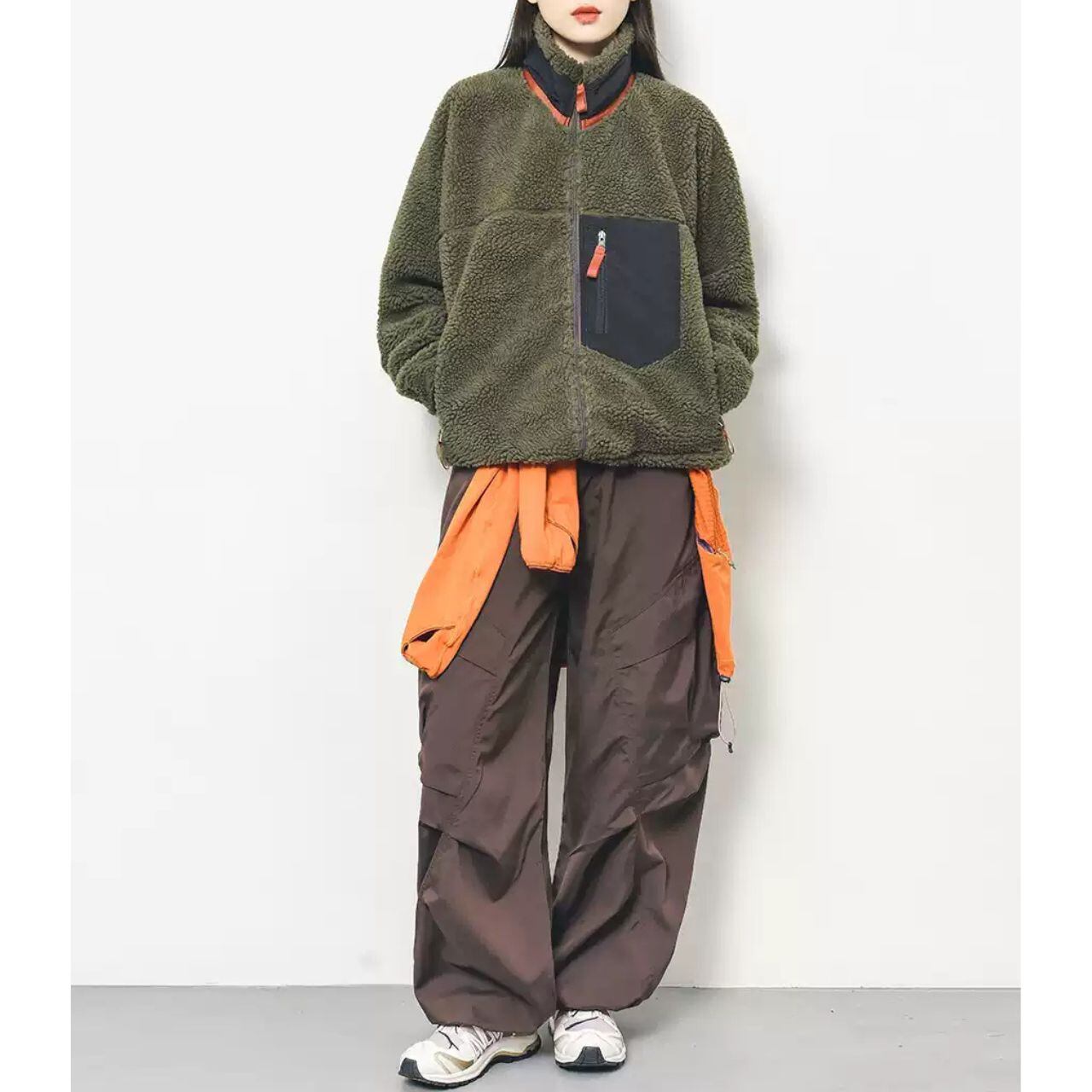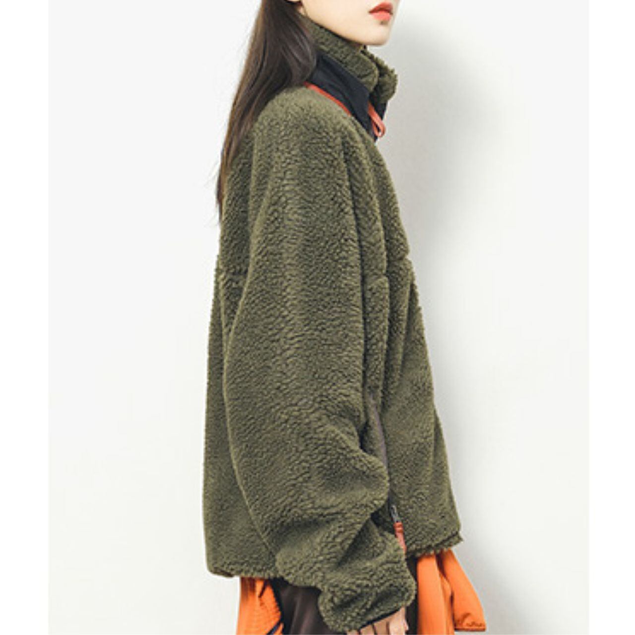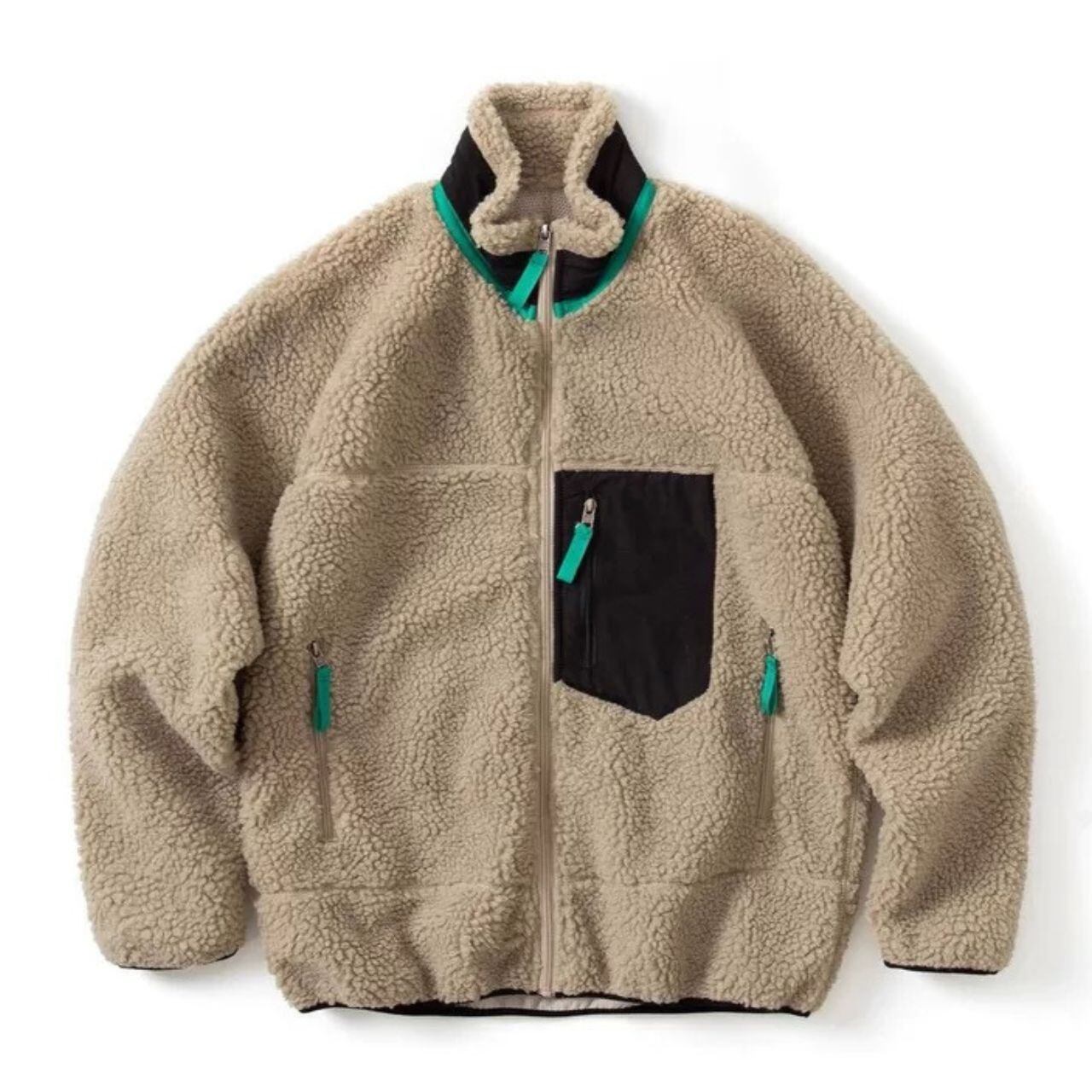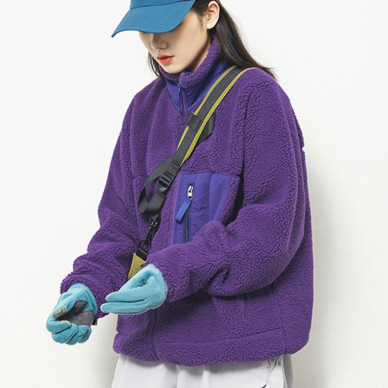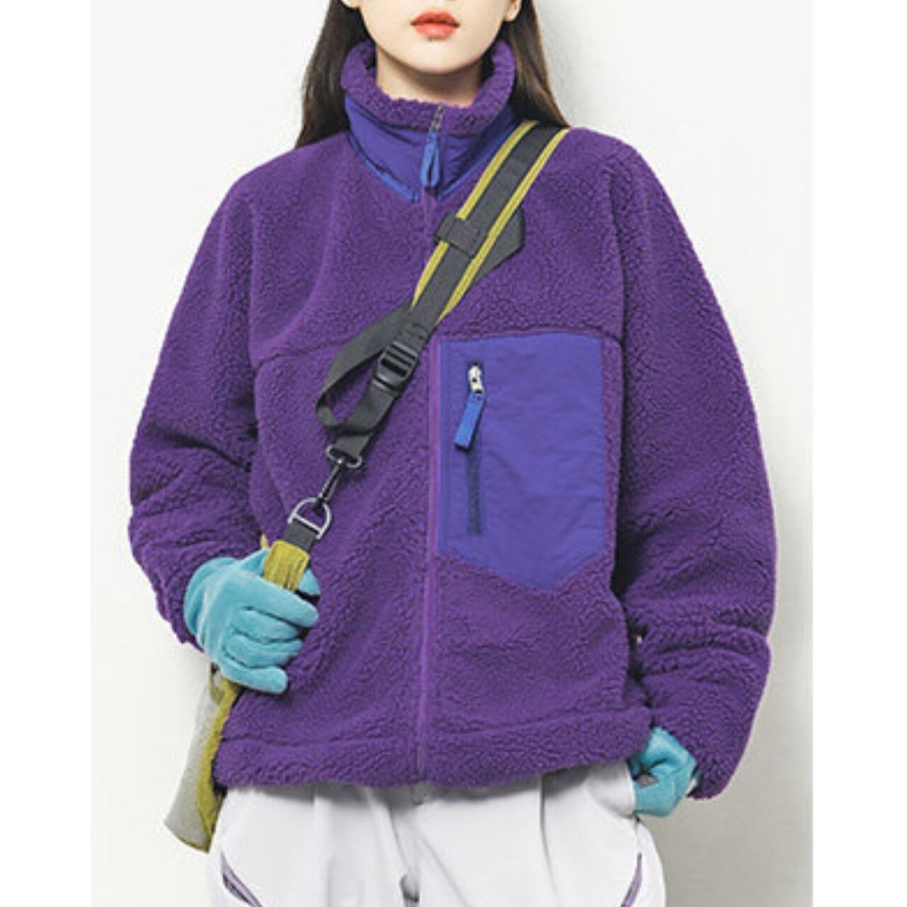 ネックラインとポケットの配色がアクセントのボアジャケット。