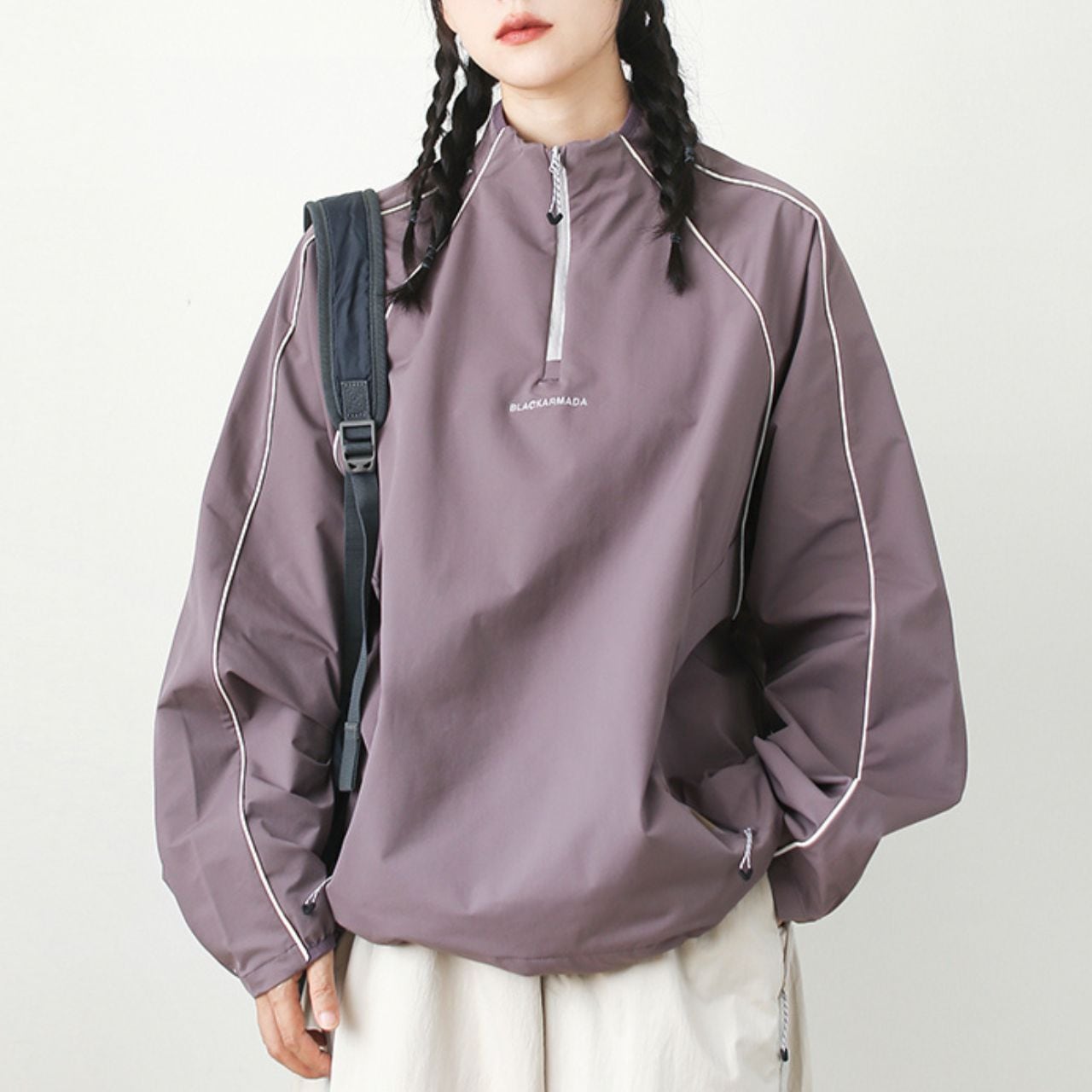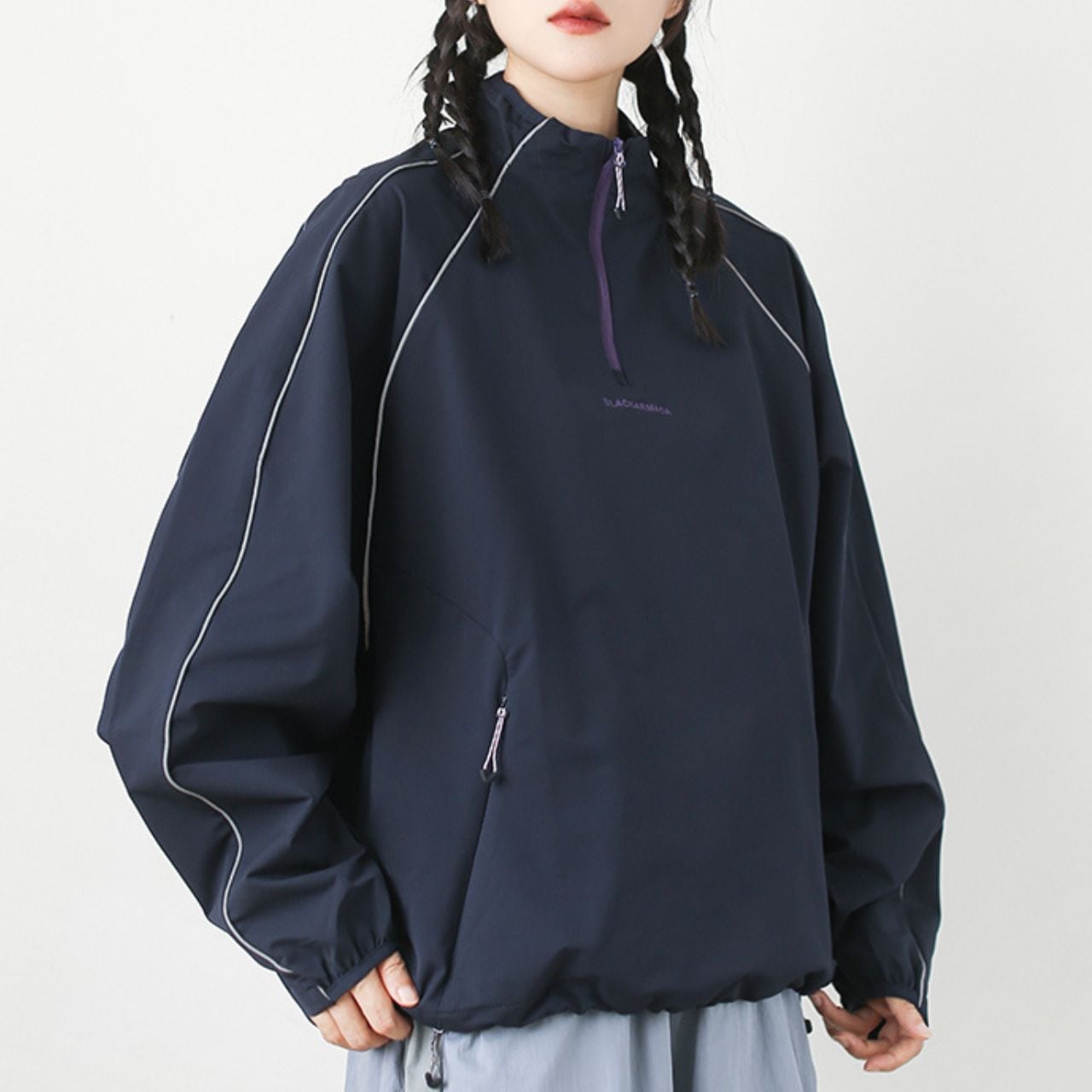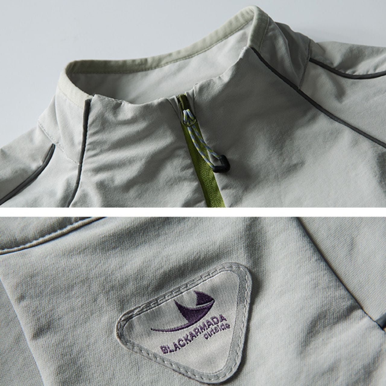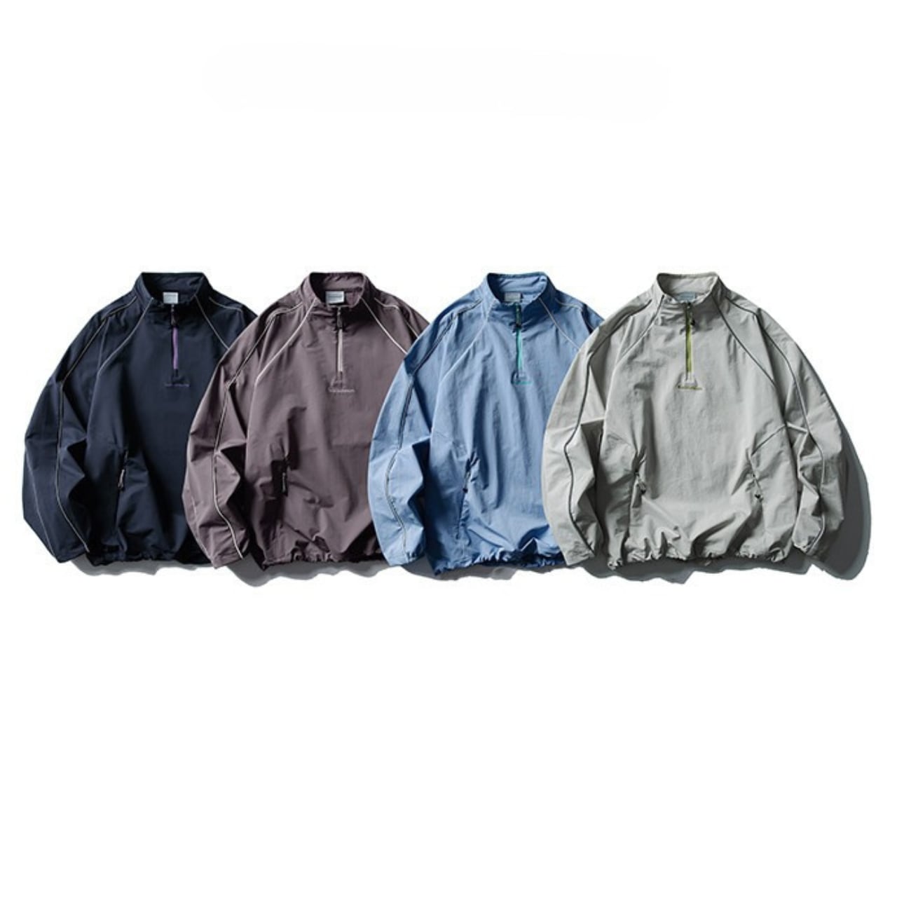 防風・撥水性を備えた軽やかな素材で、アクティブなシーンも快適に。